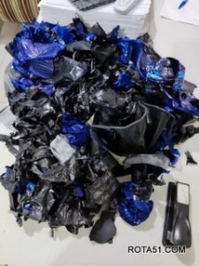 Os aparelhos celulares já estavam cuidadosamente envolvidos com borracha de câmera de ar de pneu de bicicleta, papel carbono e fitas isolantes, tudo isso com o fim específico de não serem detectados pelo scaner, durante a revista pessoal.