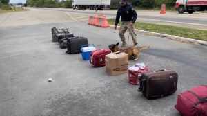 Cão farejador da PRF encontra maconha escondida em bagagem de mulher que viajava num ônibus interestadual