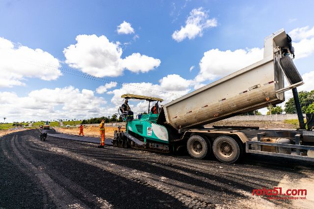 A etapa de pavimentação já está em andamento, com a aplicação de um asfalto de alta qualidade que garante maior durabilidade e segurança. Além disso, o projeto incluiu base reforçada em rachão e um eficiente sistema de drenagem.