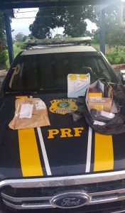 Motociclista foge de abordagem da PRF e deixa bolsa cair e a abandona com várias encomendas que deveriam ser entregues.