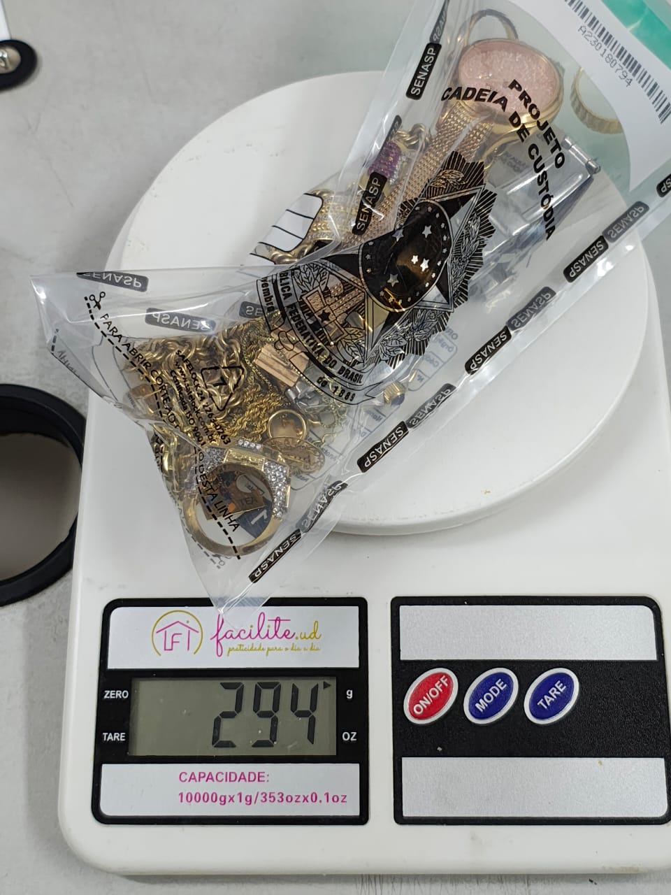 A ofensiva apreendeu joias de ouro avaliadas em aproximadamente R$ 1 milhão, além de celulares, dinheiro em espécie, drogas e documentos que serão analisados na continuidade das investigações. Entre os materiais recolhidos também foram encontrados um revólver calibre .357, aparelhos eletrônicos, um notebook, 520 porções de maconha, porções de cocaína, uma balança de precisão, cartões de crédito e uma placa veicular. A ofensiva inclui ainda o bloqueio de bens, veículos, imóveis e contas bancárias vinculadas aos investigados.