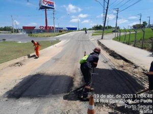 Os reparos são feitos com asfalto CBUQ, nos pontos mais críticos. “Infelizmente, precisamos corrigir o serviço malfeito de gestões anteriores, para a segurança da população”, comenta o Secretário Denisson Matos.