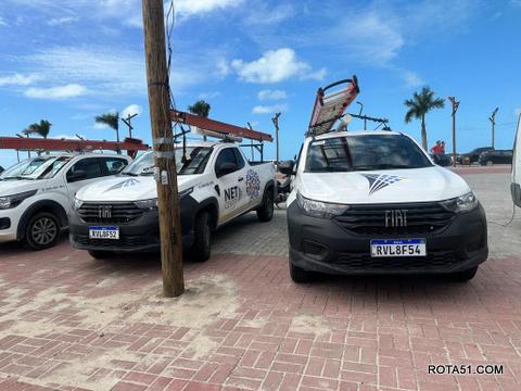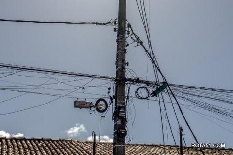 As operadoras de telefonia e internet também estão se adaptando, com a instalação de postes provisórios de eucalipto para sustentar os cabos de dados.