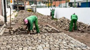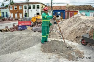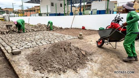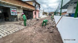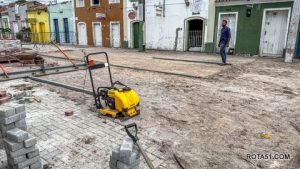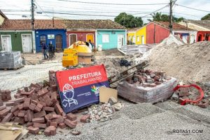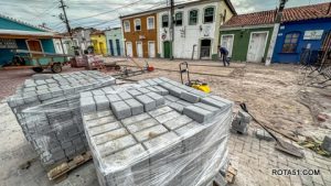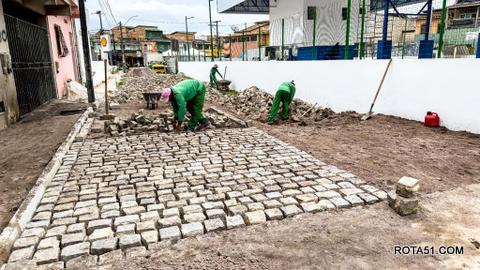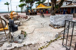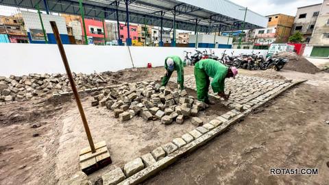 Enquanto avançam as obras de drenagem, segue também em ritmo acelerado o assentamento do novo piso em bloquete, finalizando mais uma etapa desse grandioso projeto.