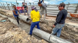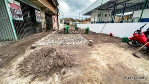 Um novo sistema de drenagem está sendo instalado em todo o trecho que vai da Travessa Augusto Borges até a esquina da Rua Oscar Oliveira Silva, com capacidade adequada de escoamento e manilhamento de qualidade e durabilidade.