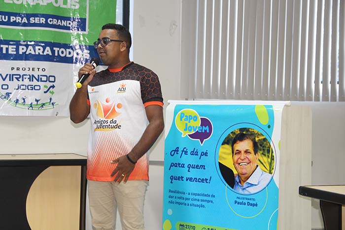 Val Cabral, foi o anfitrião do encontro, onde iniciou mostrando os momentos especiais na vida do jovem, já que no local, auditório da câmara de vereadores, estavam atletas de vários estilos esportivos e, que junto a professores de suas modalidades esportivas, ouviram o palestrante da tarde.