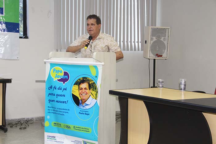 Paulo Dapé foi o palestrante, começando a falar sobre a sua vida, seus momentos terríveis com a pandemia, onde esteve por longo tempo em São Paulo, e disse que durante todo tempo ele morria a cada dia, e no final, resgatado por Deus, teve uma nova vida. E por falar em perdão, Paulo Dapé fez duas homenagens, sendo que uma delas, segundo ele, foi a esposa de um de seus adversários na CME, que outros poderiam até demiti-las, mas que ele ao invés disto, preferiu homenagea-la pela sua competência em seu setor de trabalho, a outra jhpomenagem foi feita ao jornalista Abílio Alves Pereira Neto, granmde colaborador jornalístico deste governo.