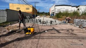 As equipes de infraestrutura da Prefeitura de Porto Seguro estão trabalhando na pavimentação em bloco sextavado da Rua da Jaqueira, no bairro Jardim Primavera, próximo ao bairro Sapoti.