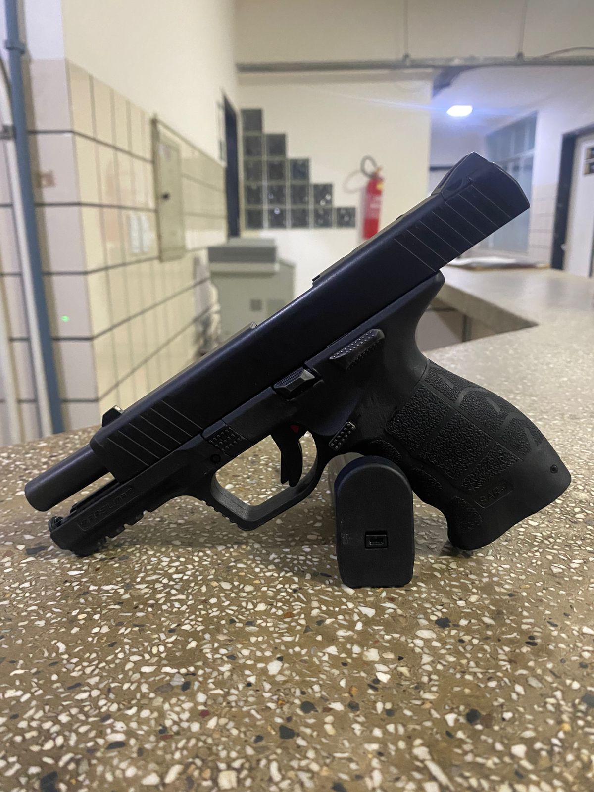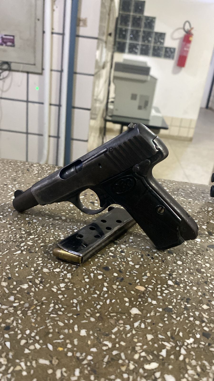 Na noite deste sábado (29), por volta das 21h, policiais militares do Pelotão de Emprego Tático Operacional (PETO) da 44ª CIPM realizavam rondas ostensivas pela Rua Sete de Setembro, no município de Medeiros Neto, quando avistaram dois indivíduos em uma motocicleta Honda/CG de cor vermelha. A equipe percebeu que o passageiro carregava um volume na região da cintura, o que motivou a abordagem.