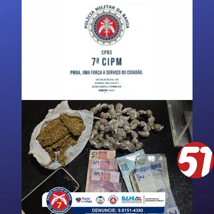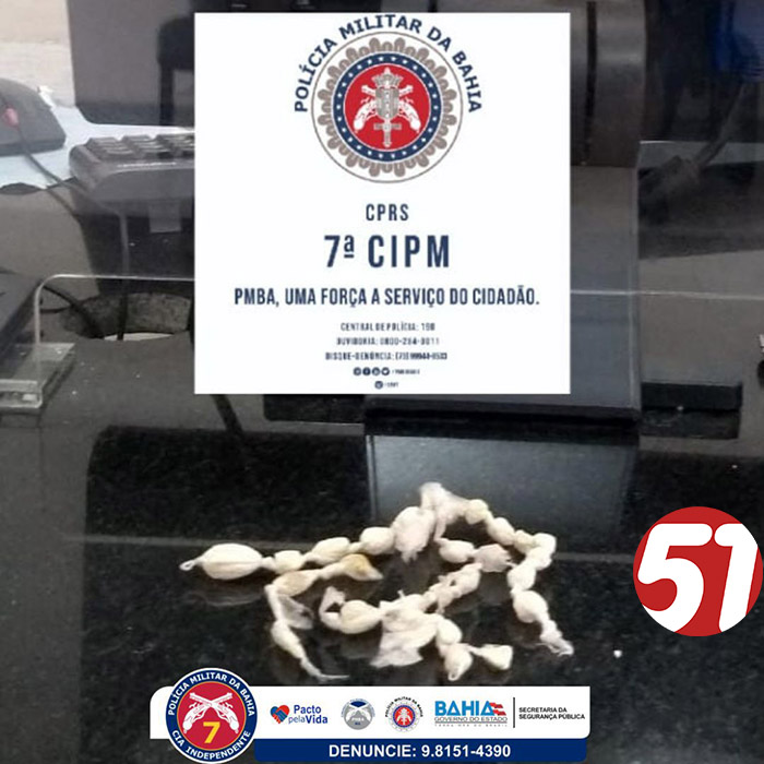 Em Eunápolis, houveram três ocorrências de tráfico de drogas. No sábado (25), no bairro Alecrim, um adolescente de 15 anos foi flagrado comercializando entorpecentes. Após contato com o seu genitor, o menor foi conduzido para a Delegacia e apresentado juntamente com as 08 buchas de substância análoga à maconha, 02 pinos de substância análoga à cocaína e R$155,00 em espécie.