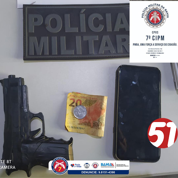 Ao procederem com abordagem e busca pessoal foram encontrados com os indivíduos, um simulacro de arma de fogo.