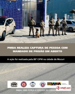 Na noite de 31 de maio de 2025, por volta das 20h, a 89ª CIPM, em atuação conjunta com o Serviço de Inteligência do 19° BPM/PMMG e a FICCO/MG, localizou e prendeu um indivíduo procurado pela Justiça. A operação ocorreu na Avenida Central, no Centro de Mucuri/BA, nas proximidades do Espetinho do Moisés.