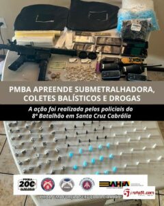 PMBA APREENDE SUBMETRALHADORA, COLETES BALÍSTICOS E DROGAS
