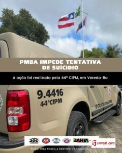 Na noite de sábado (15), por volta das 18h20, policiais militares do 5º Pelotão da 44ª CIPM foram acionados após um solicitante relatar que seu amigo estava em cima de uma escada, com uma corda no pescoço, ameaçando tirar a própria vida. O fato ocorreu no bairro Jainor da Rocha Nonato, área urbana de Vereda-BA.