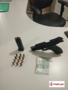 Na noite de 27 de julho de 2025, por volta das 23h, a guarnição da 89ª CIPM foi acionada para averiguar uma denúncia sobre um indivíduo armado e aparentemente embriagado dentro de um estabelecimento comercial na Rua Pedro Carolino Costa, distrito de Posto da Mata, Nova Viçosa/BA. Ao chegar ao local, o homem foi abordado e, durante a revista, foi encontrada uma pistola calibre .40, modelo TH40, municiada com 12 munições.