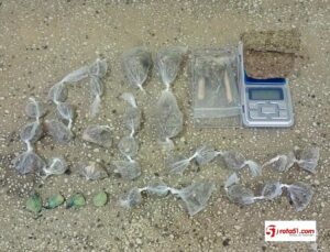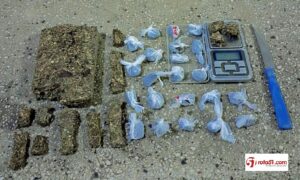 A sacola deixada pelo suspeito continha 35 porções de maconha (63g), um pedaço maior da mesma substância (170g), uma balança de precisão e uma faca tipo serra. Todo o material também foi apresentado à delegacia da cidade.