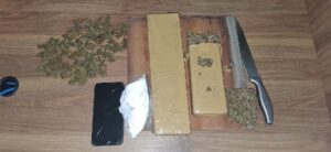 * 01 tábua de madeira utilizada para cortar/fracionar a maconha;