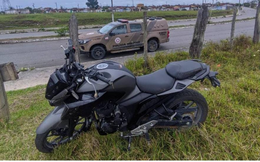 Chegando ao local, verificou-se tratar de uma motocicleta Yamaha faser, com restrição de furto/roubo.