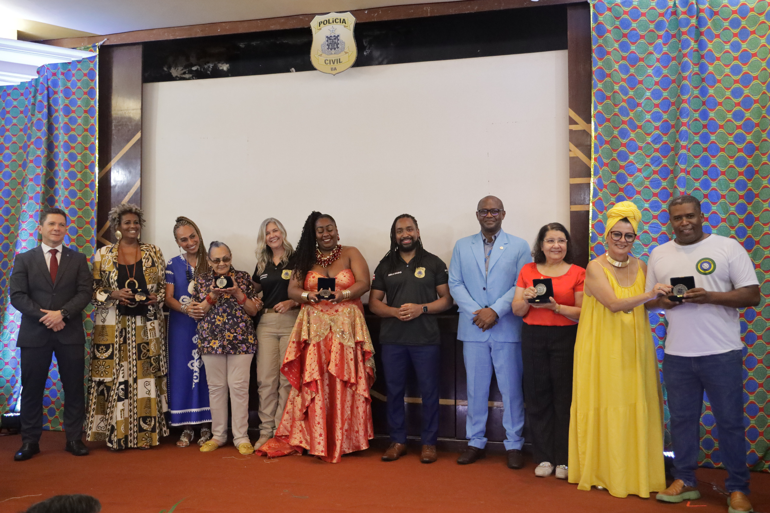 A Polícia Civil promoveu, nesta quarta-feira (19), um evento alusivo ao Dia Nacional da Consciência Negra e à data que celebra o Herói Brasileiro Zumbi dos Palmares, no Museu Eugênio Teixeira Leal, no Centro Histórico de Salvador. A atividade reuniu representantes de instituições públicas e movimentos sociais e contou com a apresentação de um estudo sobre a incidência do crime de racismo na Bahia, elaborado pelo Instituto de Segurança Pública, Estatística e Pesquisa Criminal (ISPE).