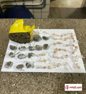 Ao perceber a presença da viatura, o suspeito fugiu rapidamente, abandonando o material todo o material. Apesar das buscas, ele não foi localizado. Todo o entorpecente encontrado foi apresentado na Delegacia de Polícia da cidade.