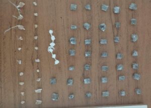 Diante da situação, foi realizada uma varredura no local, onde foi encontrada uma sacola contendo substâncias entorpecentes já porcionadas e embaladas, sendo 20 pedras de crack, 06 porções de cocaína e 37 porções de maconha.