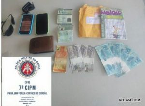 De posse das características dos homens, os policiais deslocaram e, ao proceder com a abordagem e busca pessoal, encontraram a quantia de R$ 1.000,00 em notas falsas com um deles.