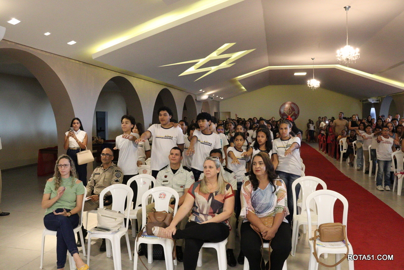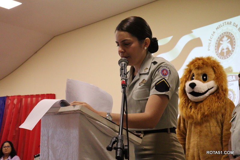 Todo comando da PM esteve presente, sendo que a solenidade foi comandada pelo CAP. PM Irlan Michel, e a mesa oficial teve a presença da prof Bernadete Galuad, representando a diretora da escola Roberto Santos, Márcia Leles Souza, LORENA Cássia Guerrieri Araújo da escola Fernando Alban, Wanderson Libarino Lopes da escola Eunice Reis, Elquia Alves dos Santos Ferreira da escola José Victor Figueiredo e a sra Edilene Oliveira Santana representando a escola Josaphat Marinho.