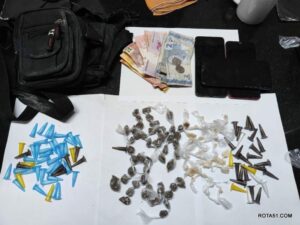 Por volta das 21h, do dia 14/07/24 (domingo), a polícia militar foi acionada por denúncia de 8 (oito) homens armados em prática de tráfico de drogas nas proximidades do Dallas Bar, no bairro Juca Rosa.