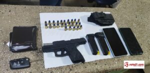 Durante a abordagem, nada de ilícito foi encontrado com os ocupantes. Contudo, na busca veicular, os policiais localizaram uma pistola Taurus, modelo G2C, calibre 9mm, de uso restrito. A arma estava municiada e acompanhada de dois carregadores da mesma marca, além de 25 munições do mesmo calibre. Também foram apreendidos dois celulares e o veículo utilizado pelos suspeitos.