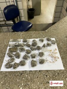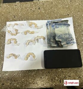 Já às 19h40, uma segunda ação foi realizada no bairro Tancredo Neves, na Rua Laranjeiras. A guarnição recebeu informações de que uma mulher estaria traficando drogas na localidade conhecida como “baixada”. Ao se deslocarem até o ponto indicado, os policiais encontraram a suspeita com diversos materiais relacionados ao tráfico. Foram apreendidas 42 pedras de crack, um celular e R$ 22,00 em espécie. A mulher, de 26 anos, foi presa em flagrante e conduzida à Delegacia de Polícia.