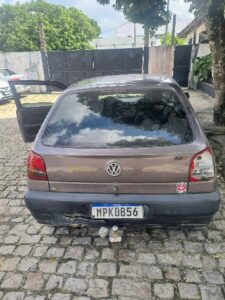 Com autorização da proprietária da residência, os agentes realizaram buscas no imóvel, porém nenhum material ilícito foi encontrado no interior da casa. No entanto, em frente ao imóvel, estava estacionado um veículo VW Gol, pertencente ao suspeito, que se encontrava aberto. Dentro do carro, os policiais localizaram parte dos objetos furtados.