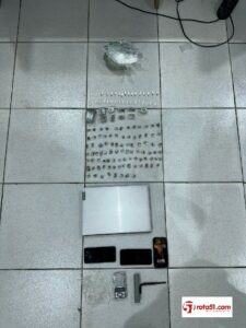 Com a aproximação dos policiais, o indivíduo empreendeu fuga, sendo alcançado de imediato. Em diligências no local, mais dois homens foram vistos e também fugiram sendo um deles alcançado logo em seguida. Com os suspeitos foram encontrados os seguintes materiais: 35 “pinos” de cocaína, 90 “buchas” pequenas e mais 10 “buchas” grandes de maconha, além de outros materiais utilizados para prática de tráfico de drogas.