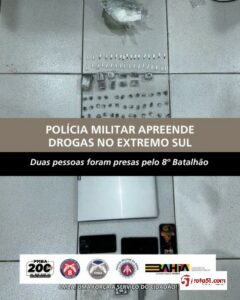 Por volta das 12:00hs do dia 19.04 (sábado), os policiais militares do 8º Batalhão foram acionados pelo Centro Integrado de Comunicação – CICOM Costa do Descobrimento para verificar uma denúncia de tráfico de drogas no Bairro Vila Vitória, em Porto Seguro.