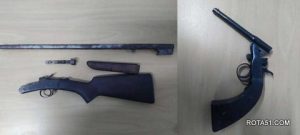 Uma pistola calibre .22 e uma espingarda foram encontradas no porta malas de um veículo de passeio