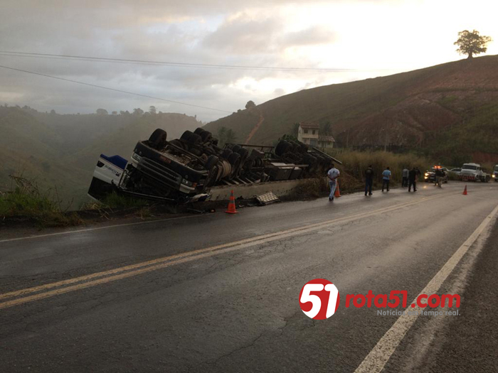 Acidente tipo tombamento, ocorrido no dia 15/6 por volta das 15h20, na BR 101, km 725, cidade Eunápolis. Envolvendo um caminhão-trator de marca/modelo SCANIA/R 440.