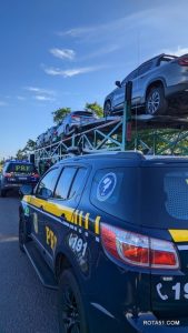 Após abordagem a caminhão cegonha, PRF encontra Fiat/Uno roubado no compartimento de carga