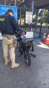Uma motocicleta com ocorrência de roubo foi recuperada pela Polícia Rodoviária Federal (PRF) na tarde desta segunda-feira (12), em Milagres (BA), distante 240 quilômetros de Salvador.