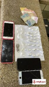 Na ação, foram apreendidos: 33 porções de cocaína, dois papelotes de maconha, 4 celulares e R$ 166.