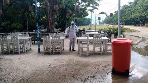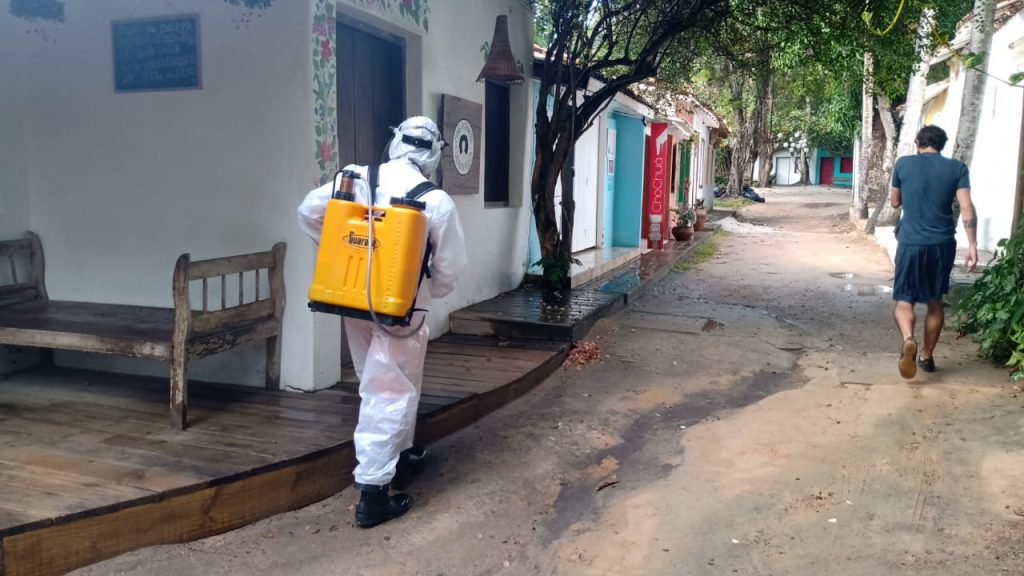 Foram 24 horas de ação contra a Covid 19 e Arbovirose (Zika vírus, febre chikungunya, febre amarela e dengue), envolvendo: aplicação de fumacê e sanitização em todo o Quadrado, além da testagem dos funcionários que atendem os turistas, com exames para detecção da Covid.