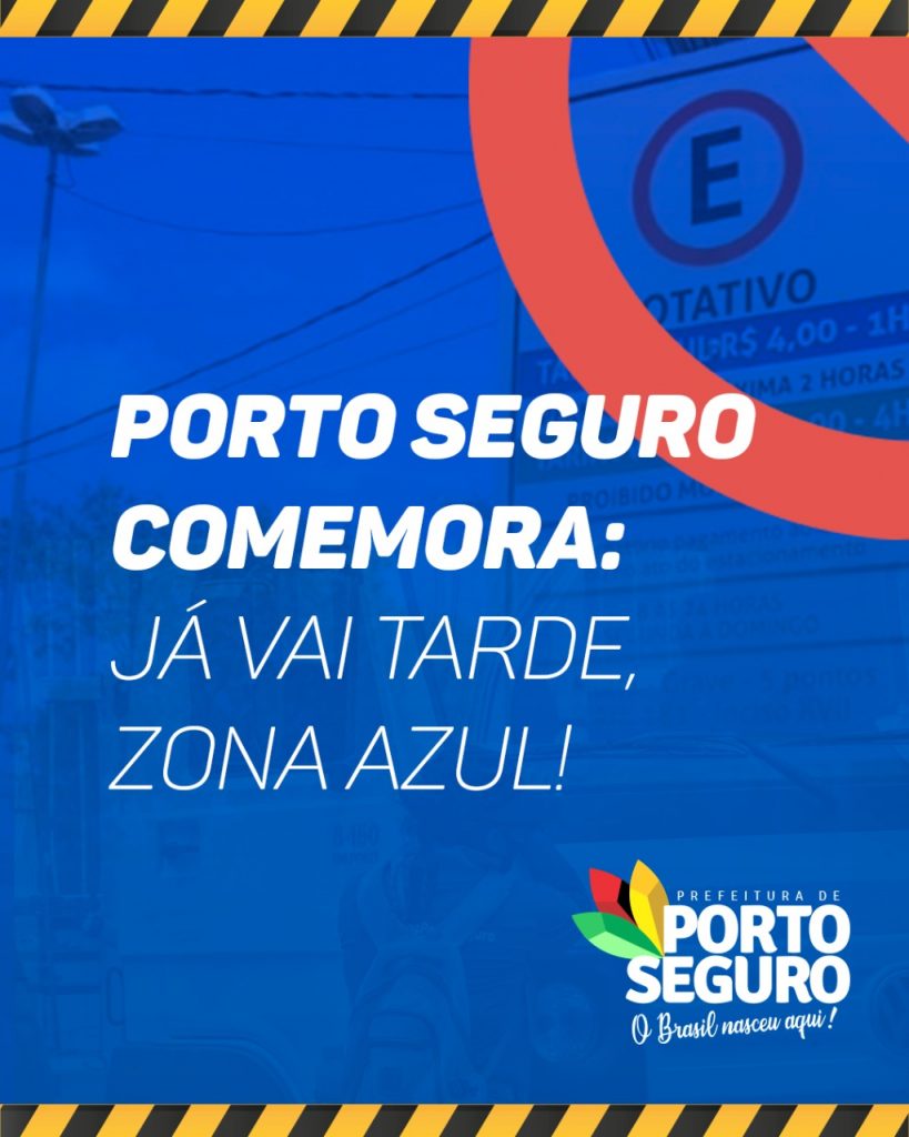 Feliz com a solução do assunto, o Prefeito Jânio Natal comemora: “Cumprimos mais uma promessa de campanha e trouxemos mais um benefício para o município. Eu avisei que iria até o fim, para acabar com essa maldita Zona Azul, que nunca devia ter sido instalada e explorava a nossa gente e os nossos visitantes, prejudicando o turismo, o comércio e a economia de Porto Seguro!”.