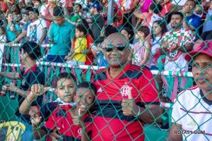 A torcida fez bonito! As arquibancadas do Agnaldo Bento lotaram para o espetáculo desta tarde. Cerca de dois mil torcedores vestiram as cores verde e vermelho, com as torcidas organizadas TOPS e Guerreiros de Porto. A galera de Itagimirim também esteve presente para empurrar seu time.