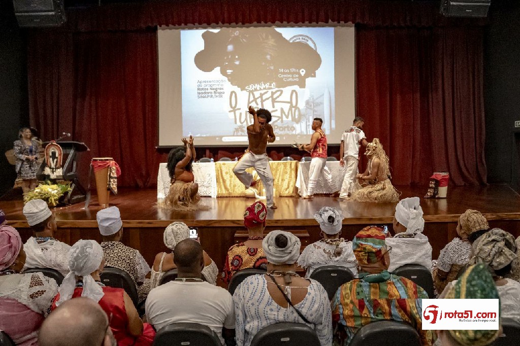 Na tarde desta quinta-feira (29), o Centro de Cultura de Porto Seguro recebeu o Seminário de Afroturismo, com destaque para a apresentação do Programa Rotas Negras, uma iniciativa do Ministério da Igualdade Racial. O encontro reuniu representantes dos governos federal, estadual e municipal, evidenciando o afroturismo como um motor de desenvolvimento econômico, inclusão social e valorização da identidade afro-brasileira.