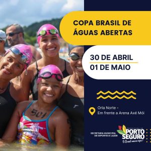 A Copa Brasil de Águas Abertas acontece entre os dias 30 de abril e 1º de maio, com provas de 1.5km, 2.5km e 5km, pela primeira vez em Porto Seguro. A programação inclui a disputa do Troféu Ana Marcela Cunha, para as categorias de base (mirim e petiz), com metragens de 250m e 500m, que leva o nome da baiana campeã olímpica da modalidade. Além das provas da Copa Brasil, serão disputadas, paralelamente, provas do Campeonato Baiano, na manhã no sábado e domingo, na praia de Taperapuan, classificando os melhores atletas para a tradicional Travessia Itaparica – Salvador, em dezembro.