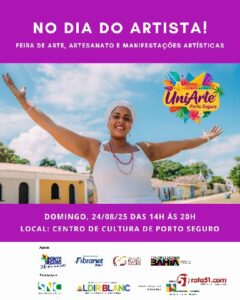 “Arte como encontro, resistência e festa”. Assim se anuncia a Feira Uniarte, que no próximo dia 24 de agosto, Dia do Artista, transformará o Centro de Cultura de Porto Seguro em palco para criadores locais. Das 14h às 20h, artistas e artesãos ocuparão o espaço com obras, música, performances e sabores, reafirmando a cidade como território fértil para a diversidade cultural.
