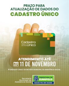 O prazo para as famílias inscritas no Cadastro Único atualizarem os dados do programa termina nesta sexta-feira (11).  A atualização deve ser feita pelos beneficiários que foram cadastrados entre 2016 e 2017.