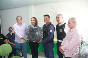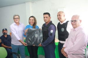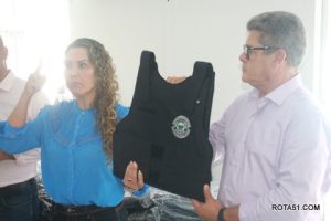 entrega de 32 novos coletes de trabalho, com proteção a prova de balas, na oportunidade falaram os secretários Ferreira ex Policial Rodoviária Federal, depois foi a vez do secretário Carlos Ronaldo e depois falou o secretário Luiz Carrilho, todos exaltando a atitude da prefeita, em fornecer novos coletes, já que os que estavam sendo usados, estavam vencidos há mais de 5 anos, depois foi a vez da prefeita Cordélia, que mostrou todo trabalho que foi feito, para que estas novas vestimentas, pudessem ser entregues.