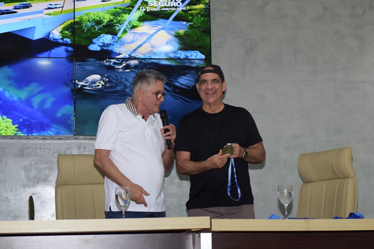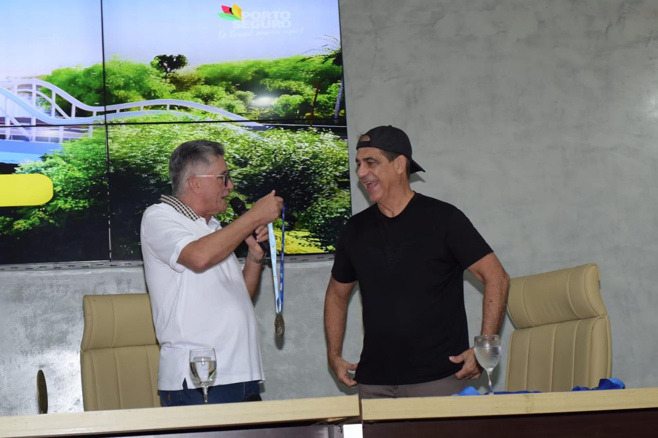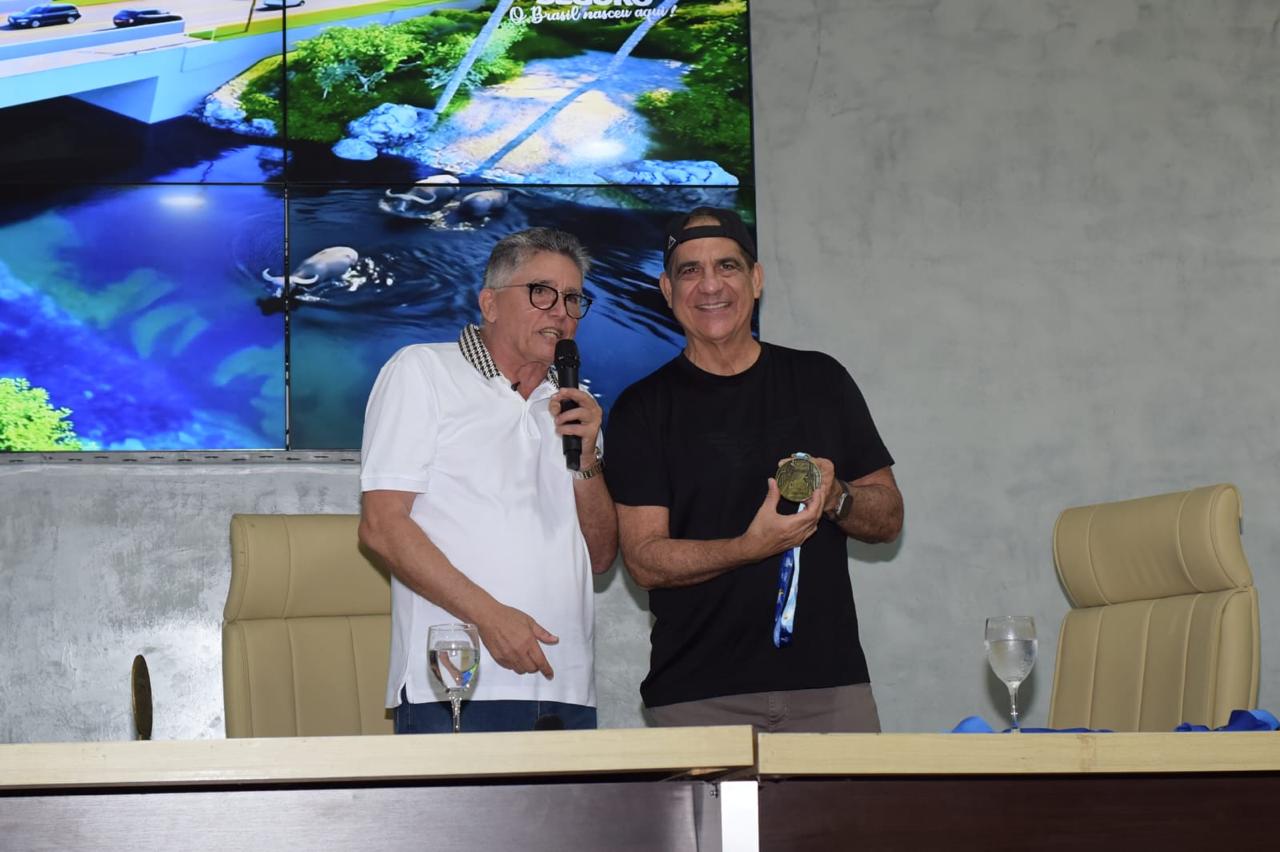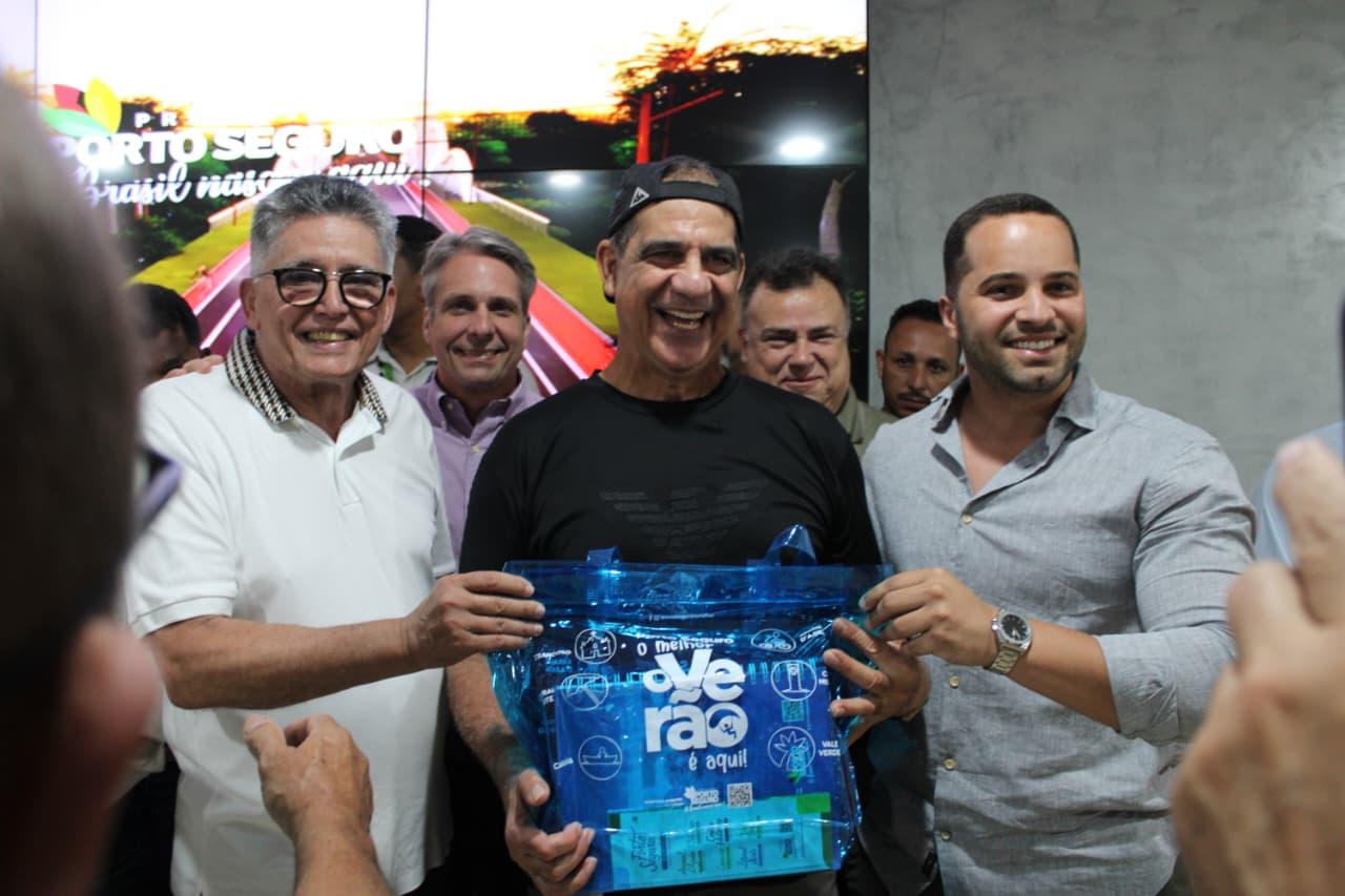 O chefe do Executivo aproveitou para anunciar atrações para a virada do ano em Porto Seguro, como Chiclete com Banana, Tomate, Pipoca do Canário e um convite ao próprio Durval Lellys. “A Trivela nasceu aqui, ela é filha dessa terra”, contou Durval, lembrando o início da sua trajetória, em 1977, na Praia do Parracho. “Hoje é um dia de muita alegria e gratidão por esse reconhecimento carinhoso de ser uma pessoa importante para Porto Seguro”, disse o artista.