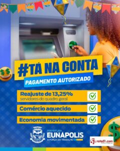 Em paralelo à sanção da nova lei, a gestão municipal antecipou o pagamento da folha de maio, iniciado nesta quinta-feira (29). A previsão é que todos os servidores estejam com seus salários em conta até sexta-feira (30). Com isso, mais de R$ 20 milhões serão injetados diretamente na economia local, fortalecendo o comércio e impulsionando o desenvolvimento de Eunápolis.