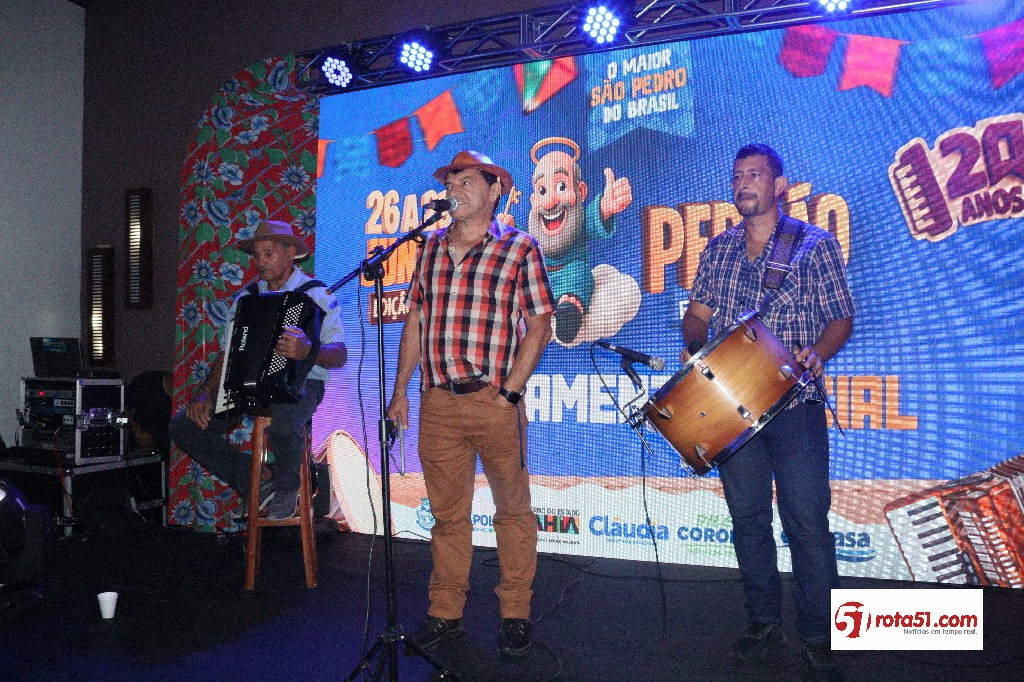 Nesta noite, que teve convidados a imprensa e as autoridades, num total de mais ou menos umas 100 pessoas, Robério Oliveira pode mostrar de como será o Pedrão deste 2025, já que por impedimento jurídico não pode ser mais na BR 101, este ano será, nas dependências do Araujão.