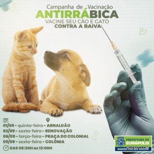Nesta quinta-feira (01), a vacinação acontecerá na UBS do bairro Arnaldão; na sexta-feira (02) será a vez do Parque da Renovação – na cobertura da entrada do bairro – ser beneficiado pela iniciativa; na terça-feira (06) a praça do bairro Colonial receberá a campanha; e na sexta-feira (09) a imunização acontece no distrito da Colônia, em frente à UBS. A vacinação contra a raiva para os animais será realizada das 8h30 às 13h.